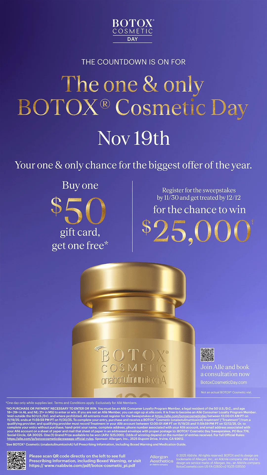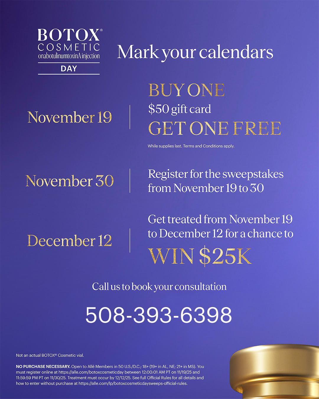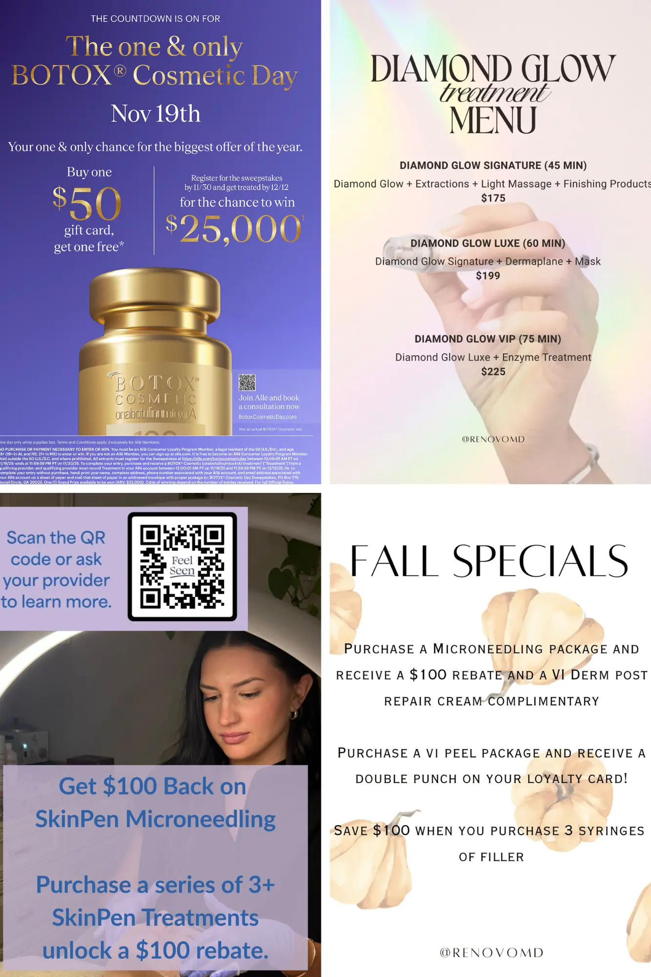 Purchase 50+ units of Botox/Dysport, one dermal filler, or a package of Microneedling, Diamond Glow, Sculptra, or VI Peel!